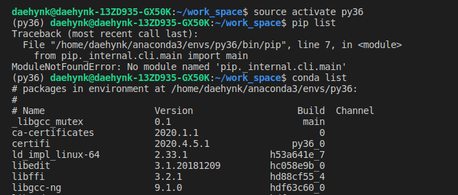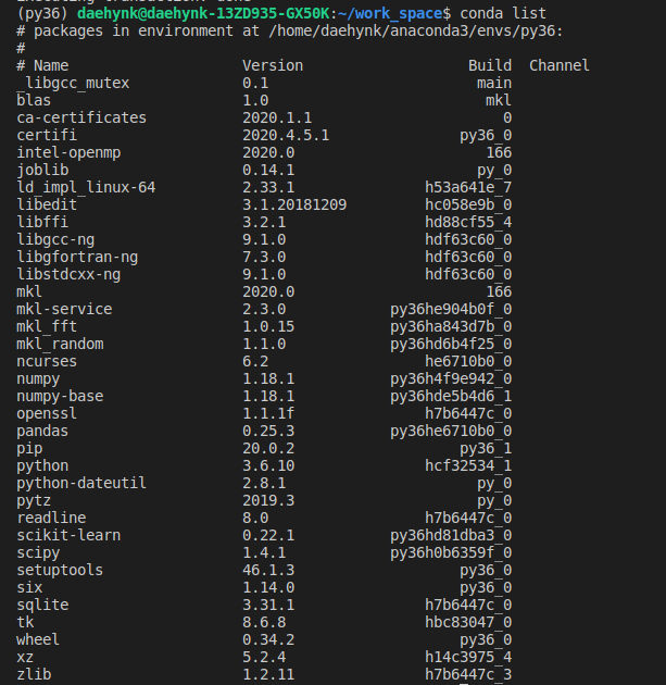 - 'py36' 부분에 갖고 있는 가상환경의 이름을 넣어주면 됩니다.