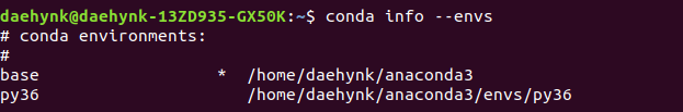 py36 이라는 가상환경이 만들어졌다는 걸 확인했습니다 :)