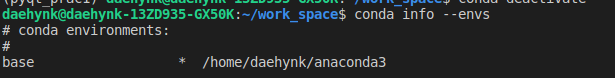 - 활성화된 가상환경을 종료할때는 가상환경 이름을 적어줄 필요 없습니다.