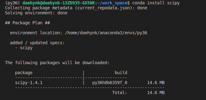 $ conda install 패키지명