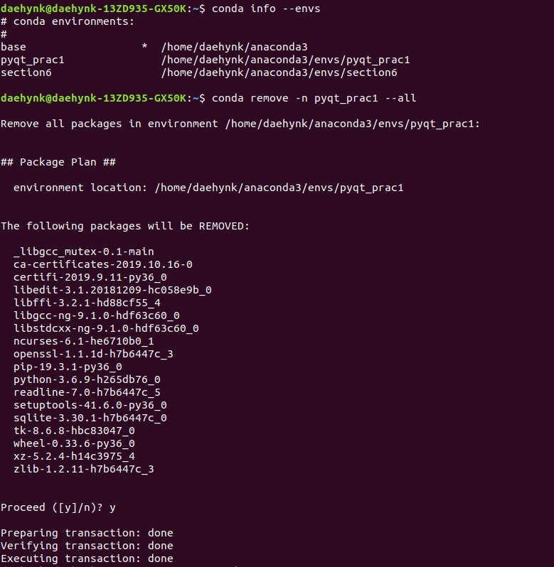 $ conda remove -n 가상환경이름 --all