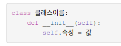 다음 챕터에서 클래스 속성을 설명할 건데 헷갈릴 수 있습니다! self.속성은 인스턴스 속성! 3번 복명복창!